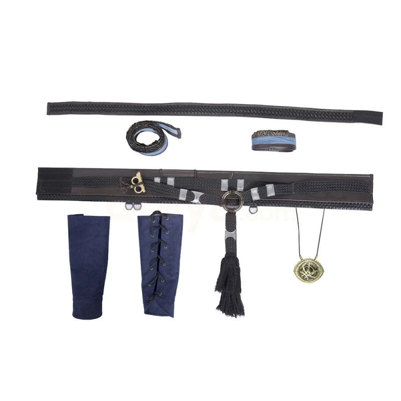 Full Set Including : Cloak, Sleeveless Robe, Sleeved Robe, Belt, Wrist Guards, Straps, Pants