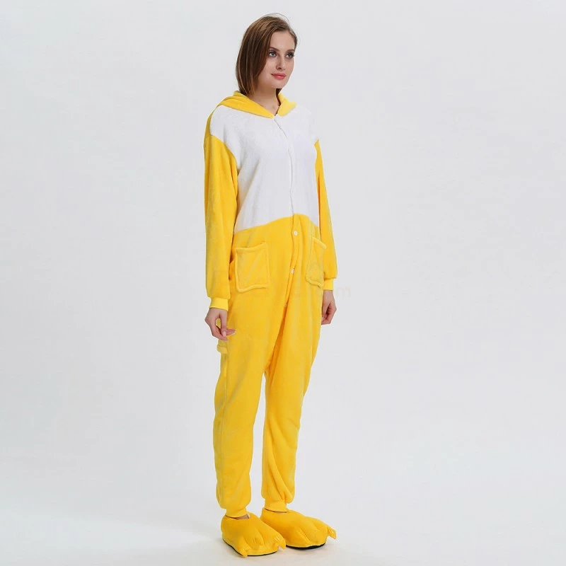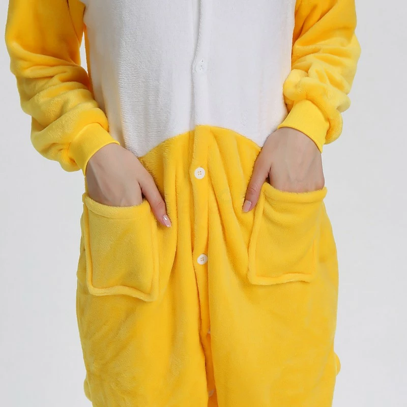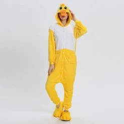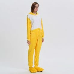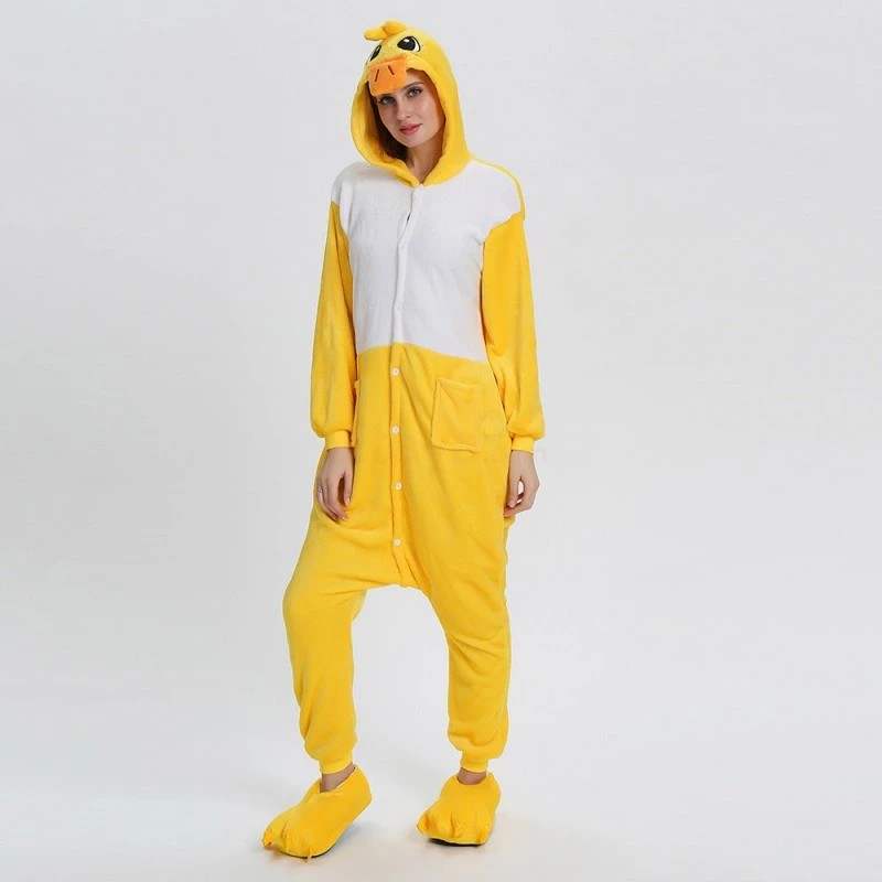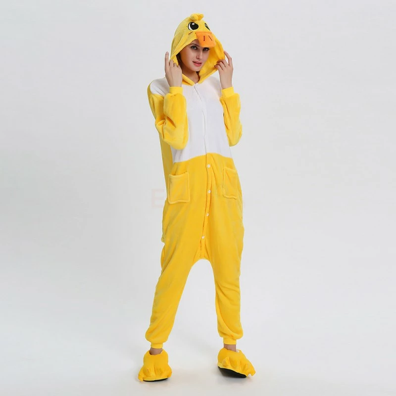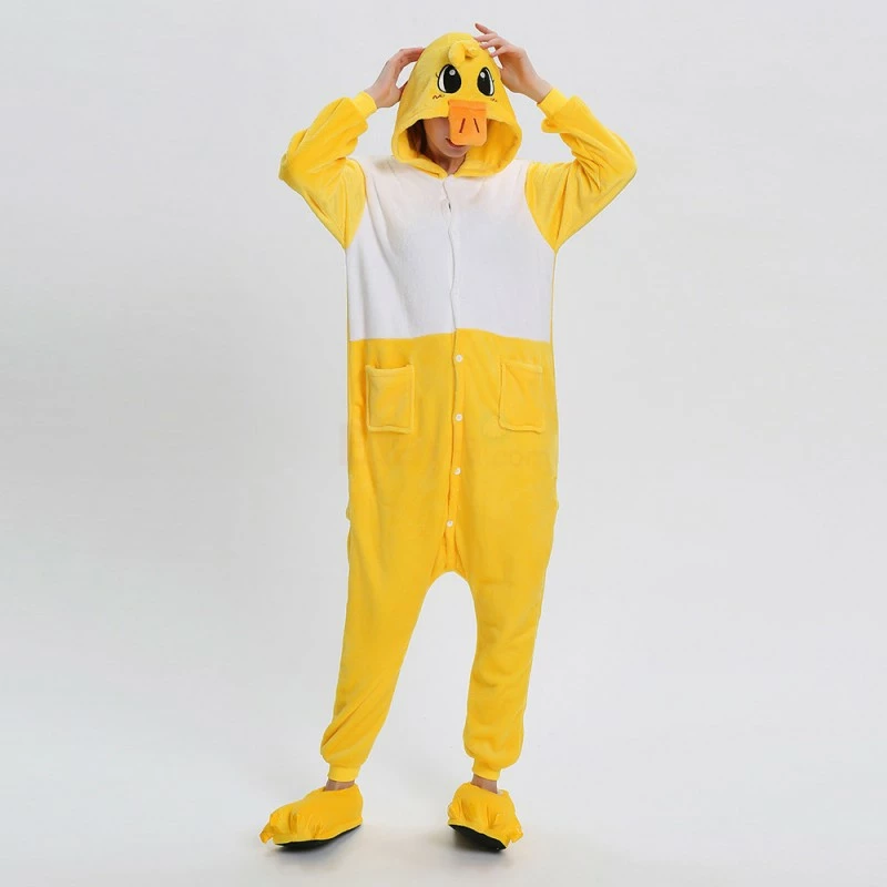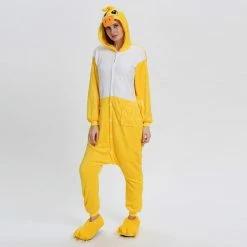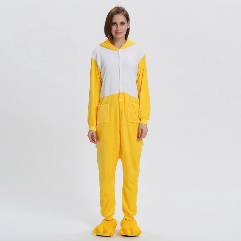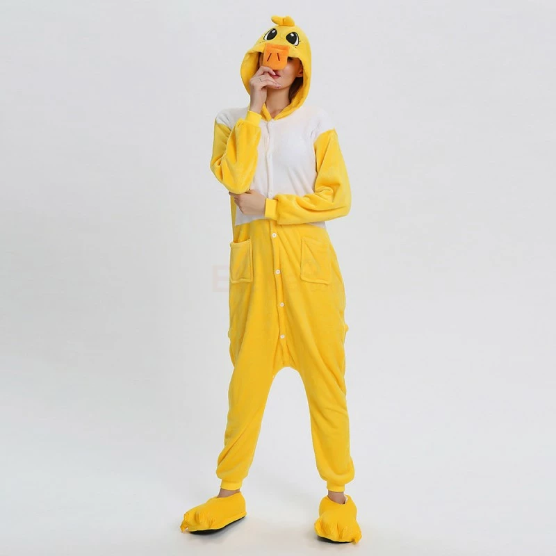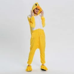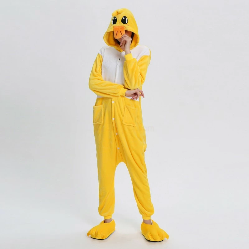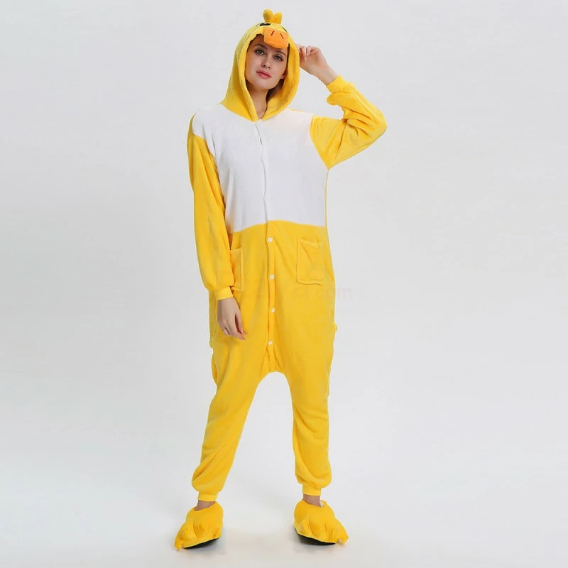 The ducks are domesticated by wild mallards and spotted ducks. It is a common poultry. The duck is a general term for the waterfowl of the genus Anatidae. It is a kind of water and land amphibians. The duck’s overall body plan is slender and has always been one of the most popular animals, creating a lot of image. The Yellow Duck Kigurumi uses yellow and white colors, and the cartoon type of mouth and ears will definitely make you like it. 100% flannel and fleece fabric is soft and comfortable.