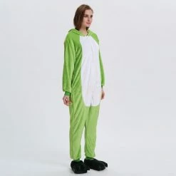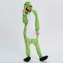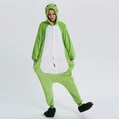 The Frog is an amphibian. The adult has no tail. The frog body is slimmer and more good at swimming. The claws cannot flex flexibly, but the limbs are muscular. The Frog Kigurumi is made from 100% flannel and fleece fabrics. Two cute eyes and cute shapes make you the focus of everyone.