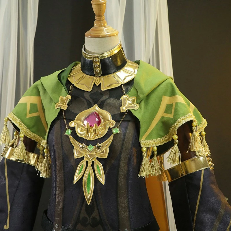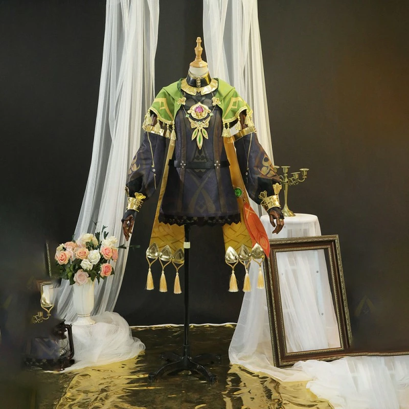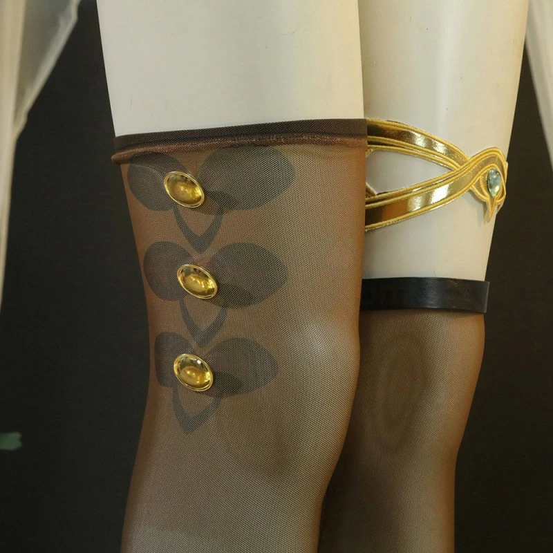 Full Set Including : Headgear, Inner Wear, Dress, Sleeve, Leg Strap, Earrings, Plastron, Waist Decoration, Cloak, Ornament, Gloves, Set of Legs, Socks