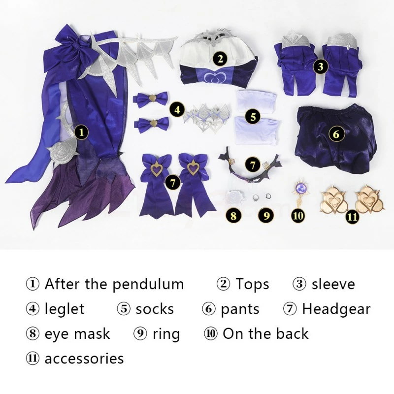 Full Set Including : After The Pendulum, Tops, Sleeve, Leglet, Socks, Pants, Headgear, Eye Mask, Ring, On The Back, Accessories