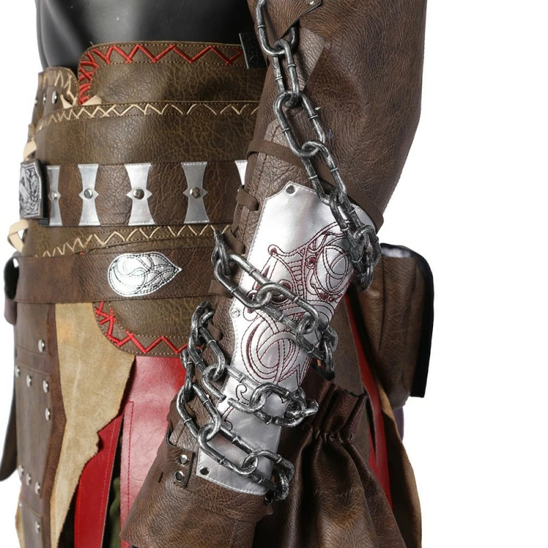 Full Set Including : Pants, Tops, Sleeve, Hand Guard, Bag, Waist Decoration, Skirt, Bandage, Leg Strap, Genouillere, Shawl, Chain, Girdle, Bag, Belt