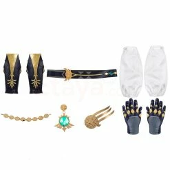 Full Set Including : Cape, Hand Guards, Top, Pant, Belts, Hairpin, Earrings, Gloves, Collar, Collar Decoration, Cape Prop, Sleeves, Waist Chains, God’s Eye Props