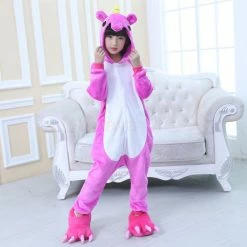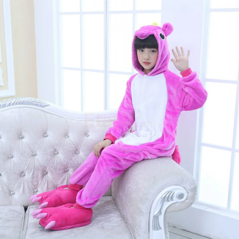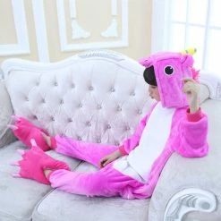 The unicorn with a spiral angle in front of the forehead, representing noble, proud and pure. The Kids Unicorn Rose Red Kigurumi is a special Kigurumi in our store. The bright colors are worn on the body to increase self-confidence and charm. Rose Red and White are also very good visual effects. The overall unique Unicorn cartoon style will make children Love it and like to wear it.
