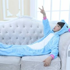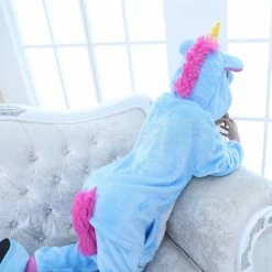 The unicorn is shaped like a white horse with a spiral angle in front of the forehead. The Kids Unicorn Blue Kigurumi is a warm and comfortable 100% Flannel and Fleece. The whole body is blue, the belly is white, and the yellow helix angle is unique. No matter which age group of Kids is suitable, buy it now!