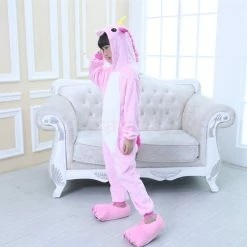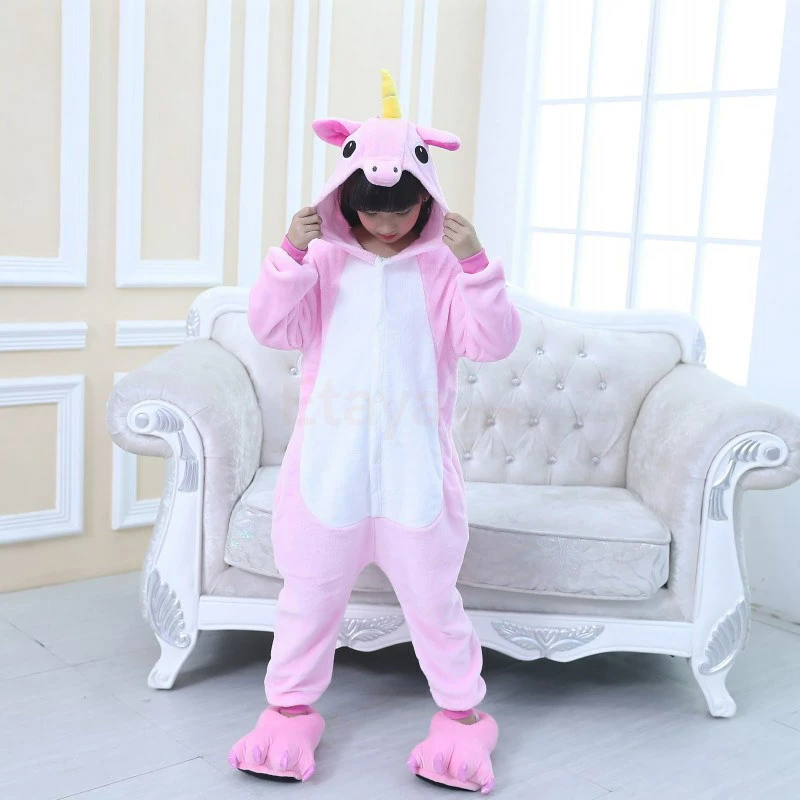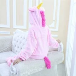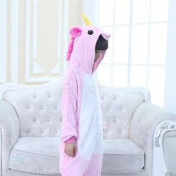 The unicorn of the current European mythology is shaped like a white horse, with a spiral angle in front of the forehead, representing noble, proud and pure. The Kids Rainbow Unicorn Kigurumi is based on a white horse with a yellow helix angle on the forehead, and Very cute Kigurumi for children made of rainbow colors. The whole body is pink, Belly is white, we also have pink shoes, 100% Flannel and Fleece, please rest assured to buy.