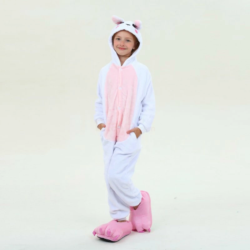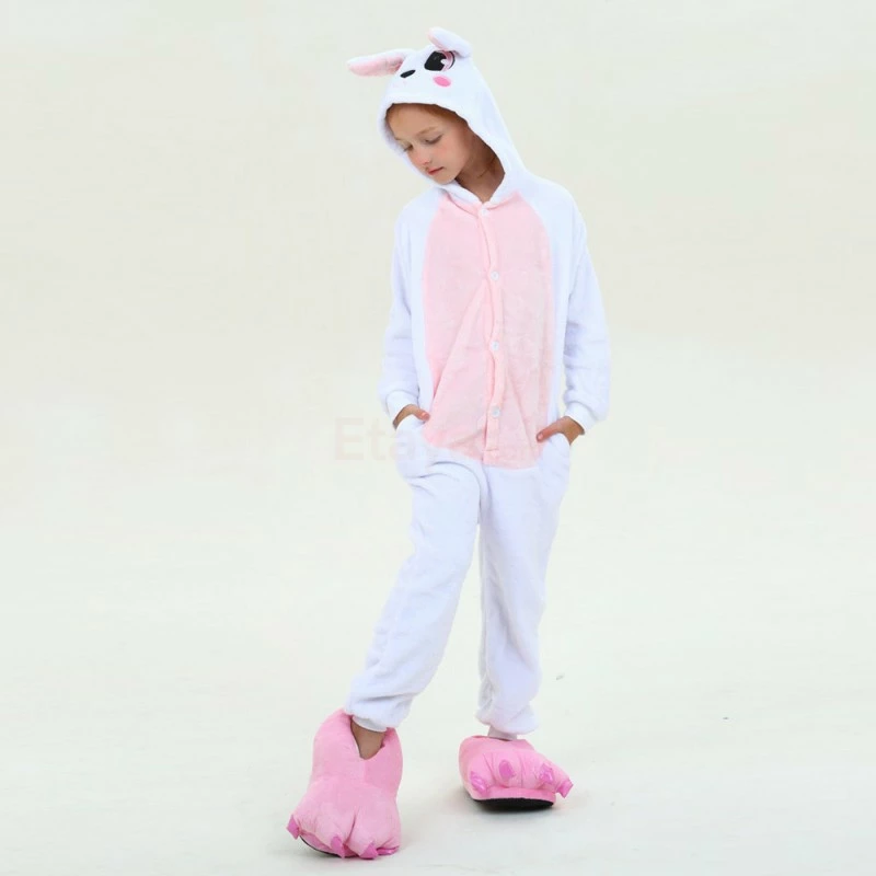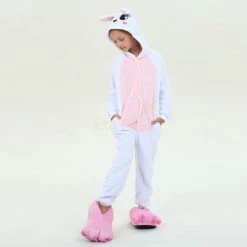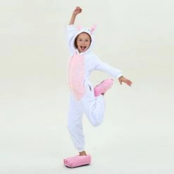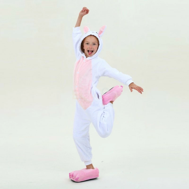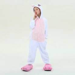 Rabbit has always been a cute image that people love, and there are many animations about rabbits. The Kids Pink Rabbit Kigurumi is specially designed for children, with a pink belly and two large ears. The children are very cute to wear. Convenient pockets and zips, 100% Flannel and Fleece, we also offer matching shoes for purchase.
