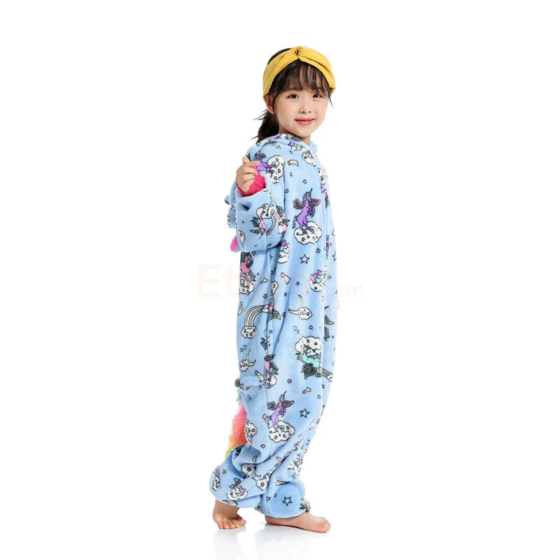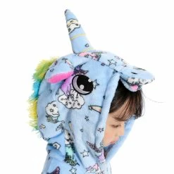 The unicorn is shaped like a white horse with a pair of wings and a spiral angle in front of the forehead, representing noble, proud and pure. The unicorn has been loved by the public since its appearance. The Kids Zipper Unicorn Kigurumi has a long zipper on the chest with a unique horn on the head and a beautiful figure on the body. 100% Flannel and Fleece fabrics have been carefully crafted with high quality, so feel free to buy.