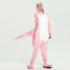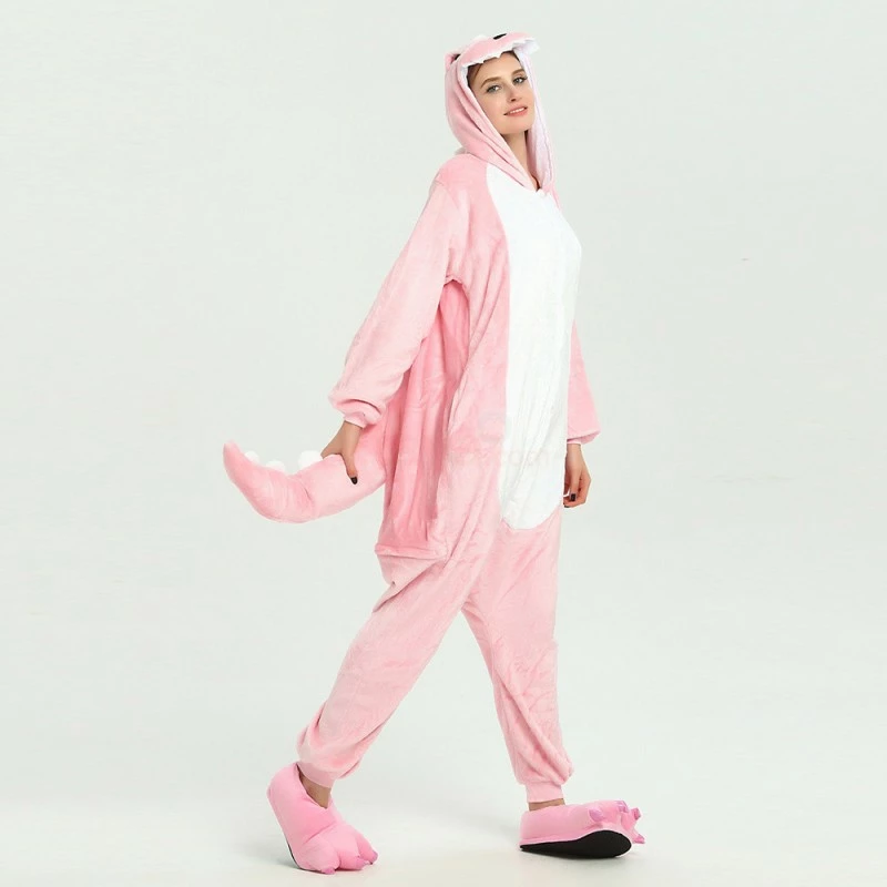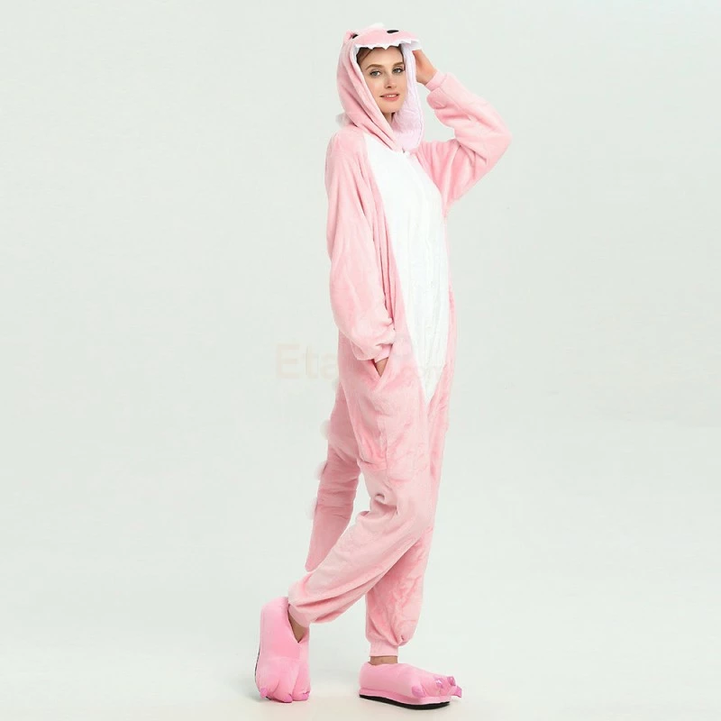 A dinosaur is a diverse reptile. The dinosaurs suddenly disappeared at the end of the Cretaceous Period 65 million years ago, becoming a mystery in the evolutionary history of the Earth’s biology. This mystery is still unsolvable. The Pink Dinosaur is a flannel fabric that is comfortable to wear and warm. The color is pinks that women like. The menacing scowl, sharp teeth and big, cuddly tail will let everyone know you’re the type who likes to go big or go extinct.