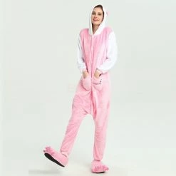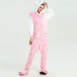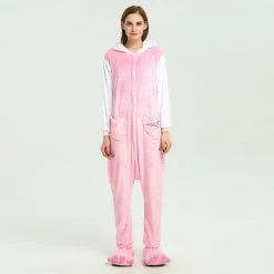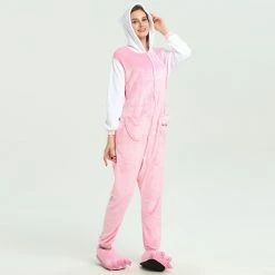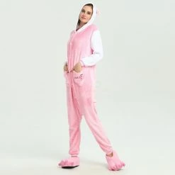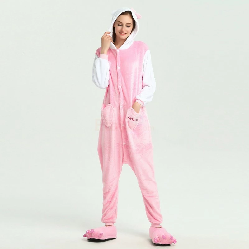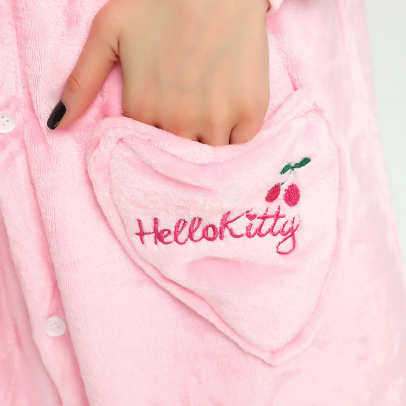 The Pink Hello Kitty Kigurumi is the same classic Hello Kitty, dressed with a new color and design! Hello Kitty is a girl at heart too, so she deserves a new look – just like you deserve a New Hello Kitty Kigurumi! The front pocket and new sleeves are a great addition to help bring out the inner Kawaii in you! Fabulously cozy high quality soft polyester fleece one-piece Kigurumi with lined hood, full button front closure, front pocket and elasticized wrist and ankle cuffs! Can withstand repeated machine wash cleanings without losing its shape.