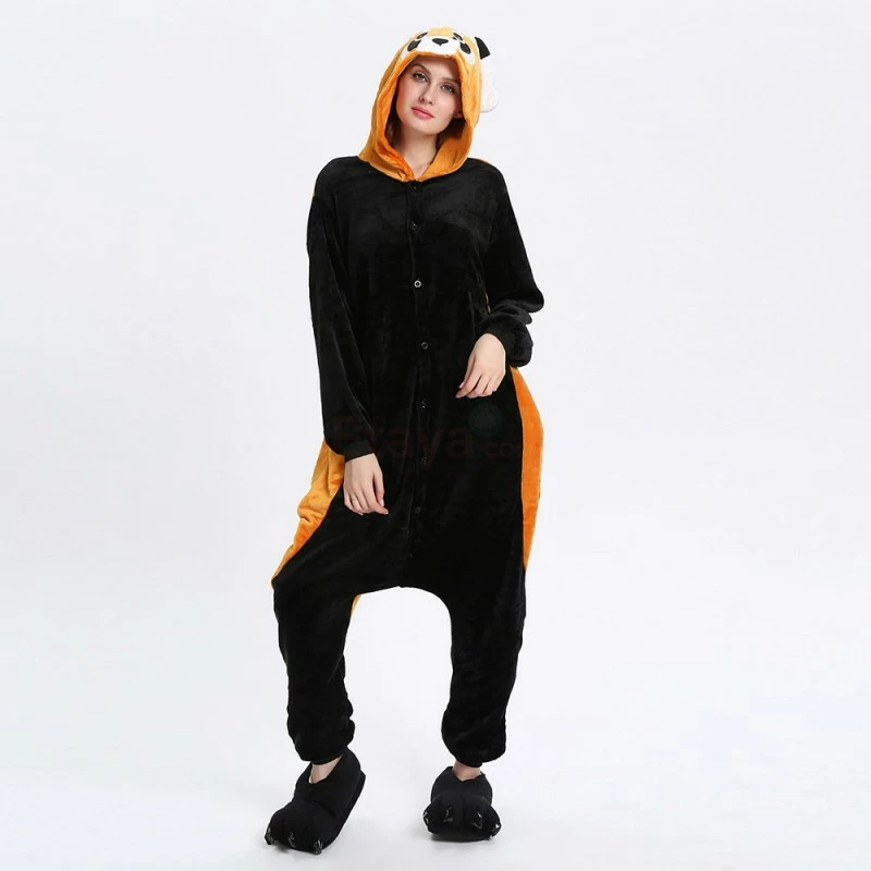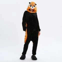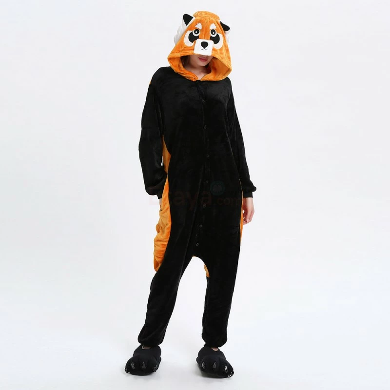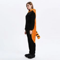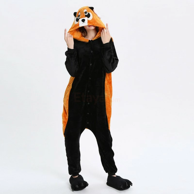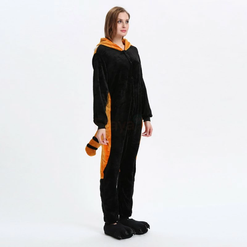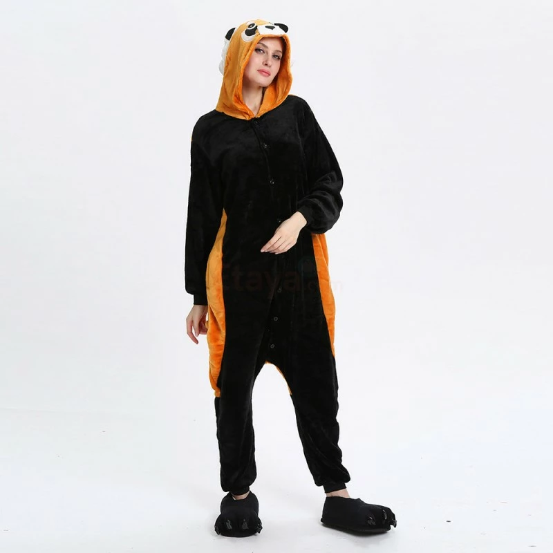 Raccoon is an animal of the genus Raccoon, a carnivorous subclass of Mammalia.The raccoon grayish coat mostly consists of dense underfur which insulates it against cold weather. Three of the raccoon’s most distinctive features are its extremely dexterous front paws, its facial mask, and its ringed tail.The Raccoon Kigurumi is black and brown, especially the tail is very playful and cute, and the soft and comfortable fabric is very warm, let you fully enjoy the nightlife.