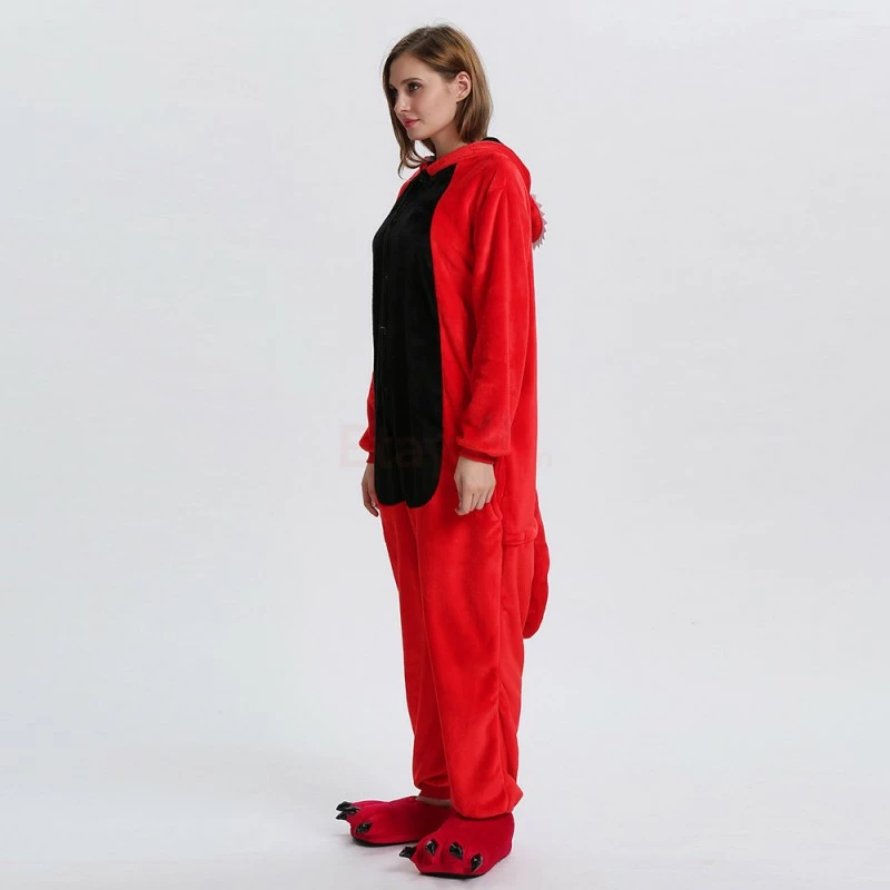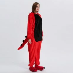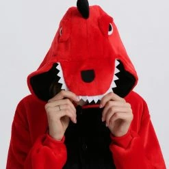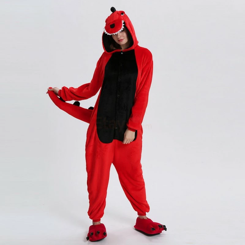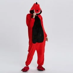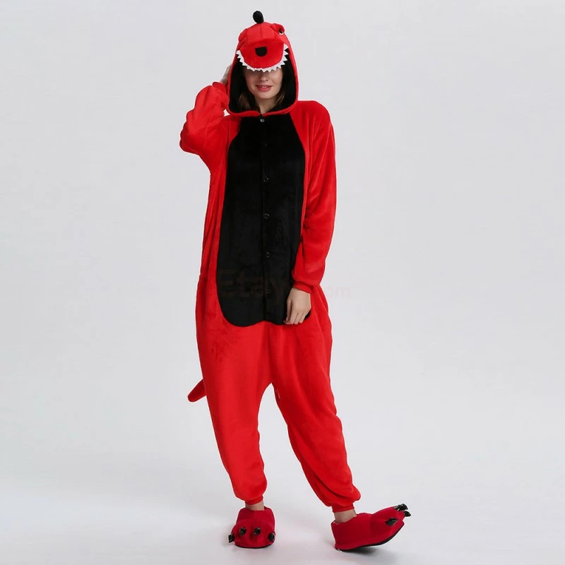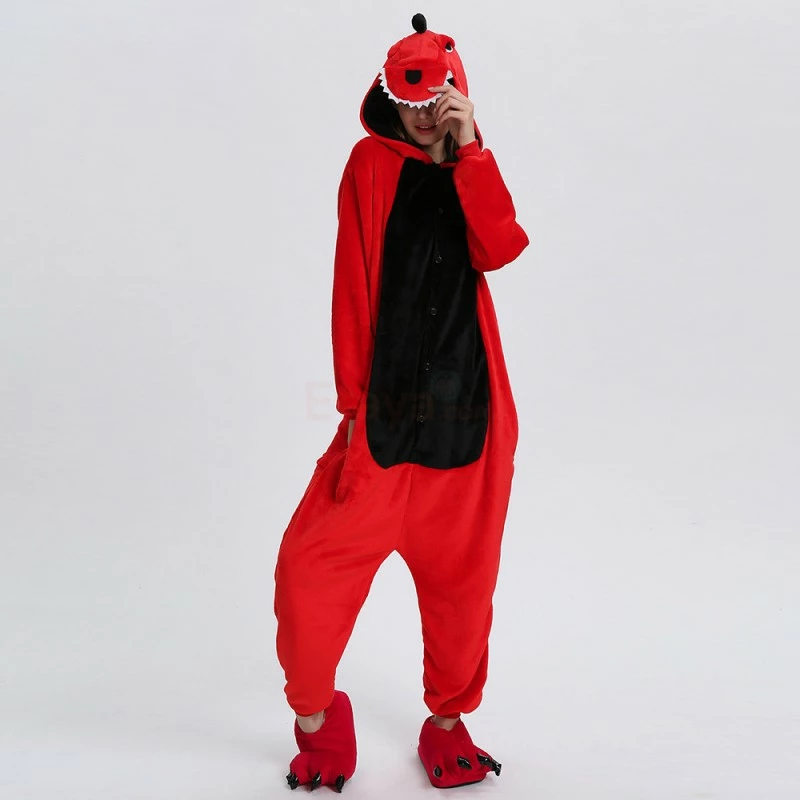 Dinosaurs are a collective term for reptiles. The powerful limbs, long tail and large body are the portrayal of most dinosaurs. There are many types of dinosaurs, and the difference in body shape and habits is also large. Dinosaurs may be extinct, 100% flannel and fleece adorable animal onesie proves comfort is alive and well! The Red Dinosaur Kigurumi The most obvious is the combination of Red and Black, with a cartoon shape and a thorn on the back for a closer look.