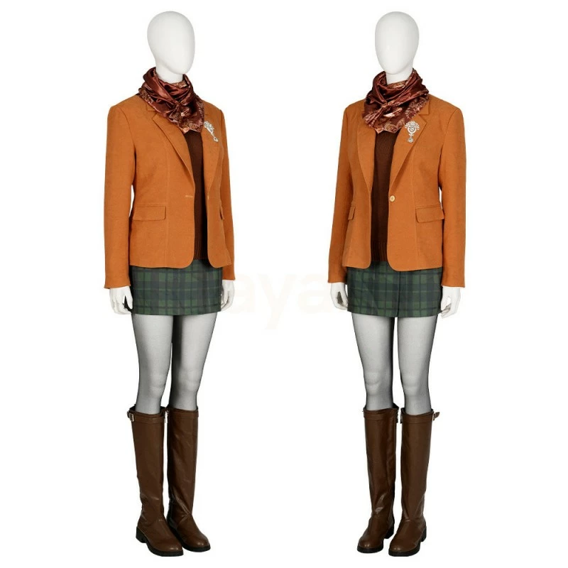 Full Set Including : Silk Scarf, Jacket, Vest, Plaid Skirt, Leggings, T-shirt