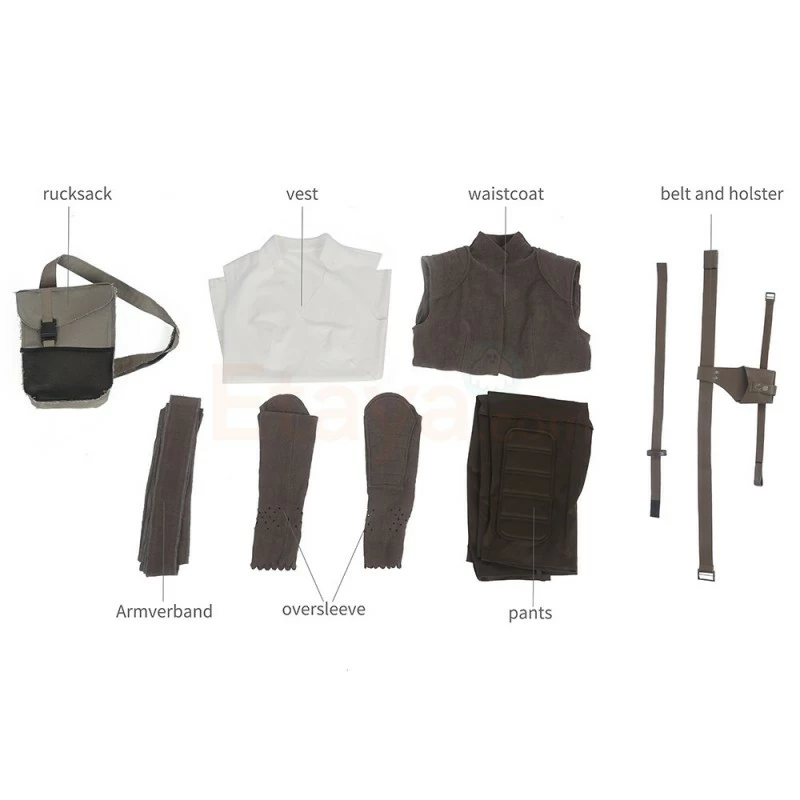 Full Set Including : Sleeveless Shirt, Pants, Vest, Bag, Arm Bandage, Belt, Holster, Sleevelet
