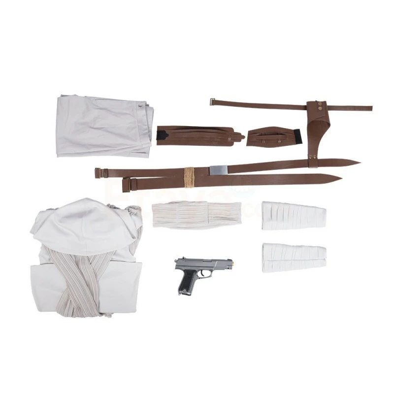Full Set Including : Tops, Pants, Waistband, Belt, Gun Holster, Wrist Guards, Shoulder Protector, Shawl, Wrist Strap, (Not included Gun)