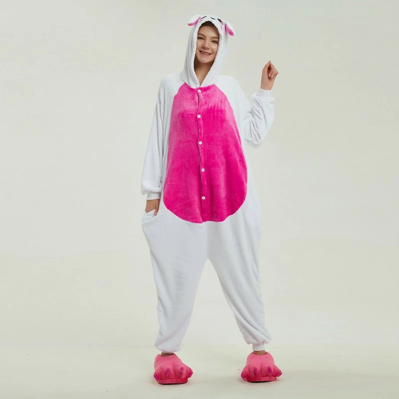 The rabbit is one of the cutest animals, its tail is short and furry, it will be organized, like a ball, very cute. Good at running and jumping is very flexible. The Rose Red Rabbit Kigurumi is a specially selected color with high quality fabrics and craftsmanship. The intimate pockets and zipper are perfect for relaxing.