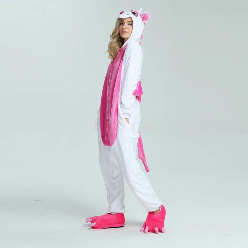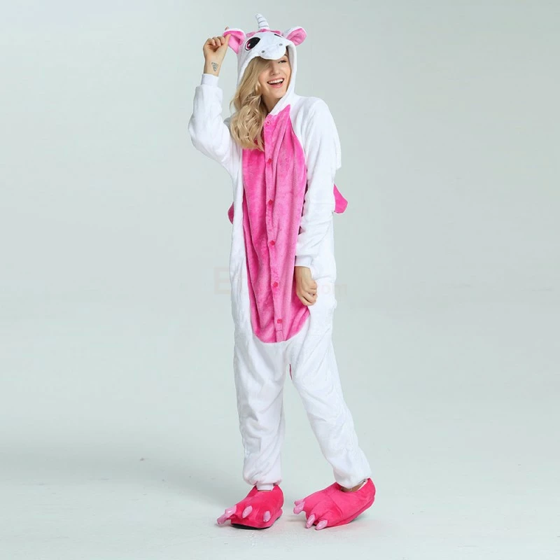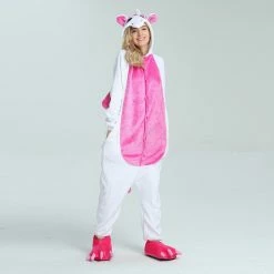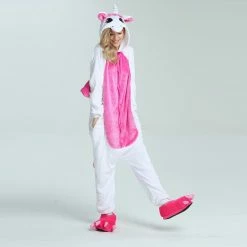 The Unicorn has been described since antiquity as a beast with a single large, spiraling horn projecting from its forehead. You will now be able to soar with their mighty unicorn horn through the galaxy of animal onesie glory, also known as your living room! The Rose Red Unicorn Kigurumi is made from 100% flannel and fleece fabrics, so buy and enjoy it!