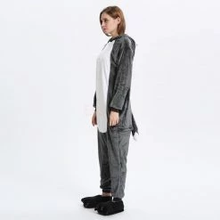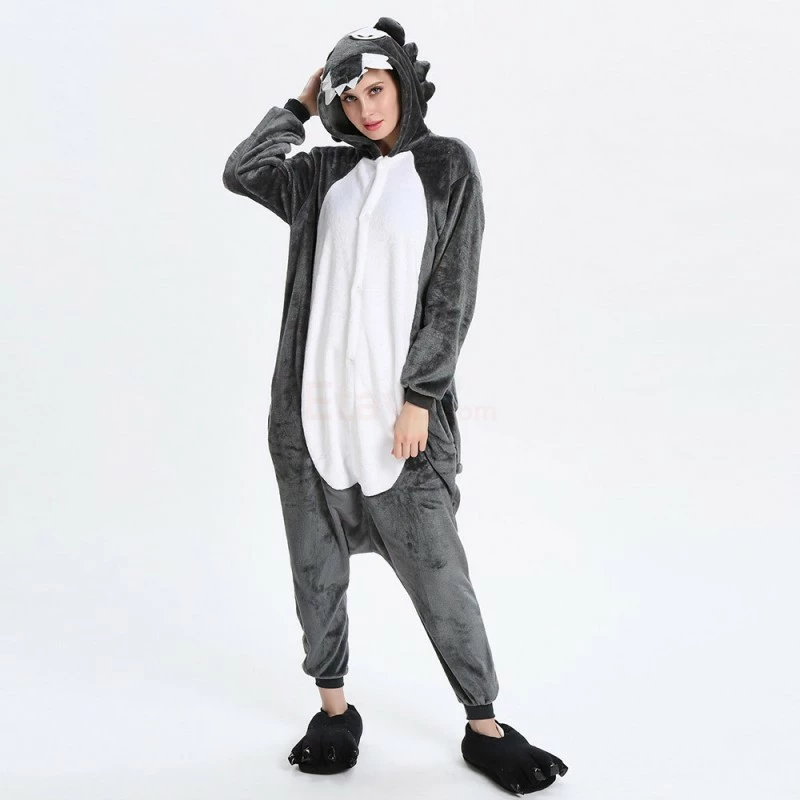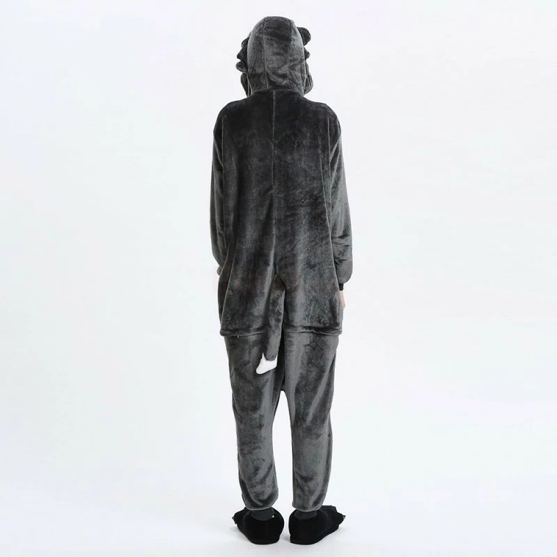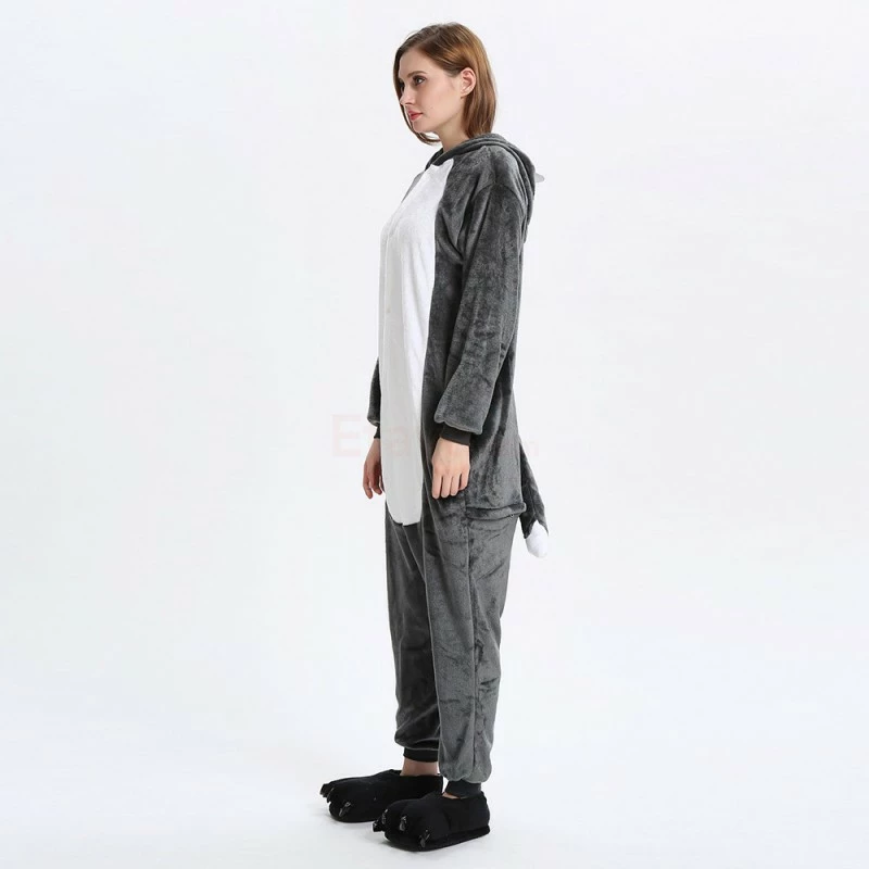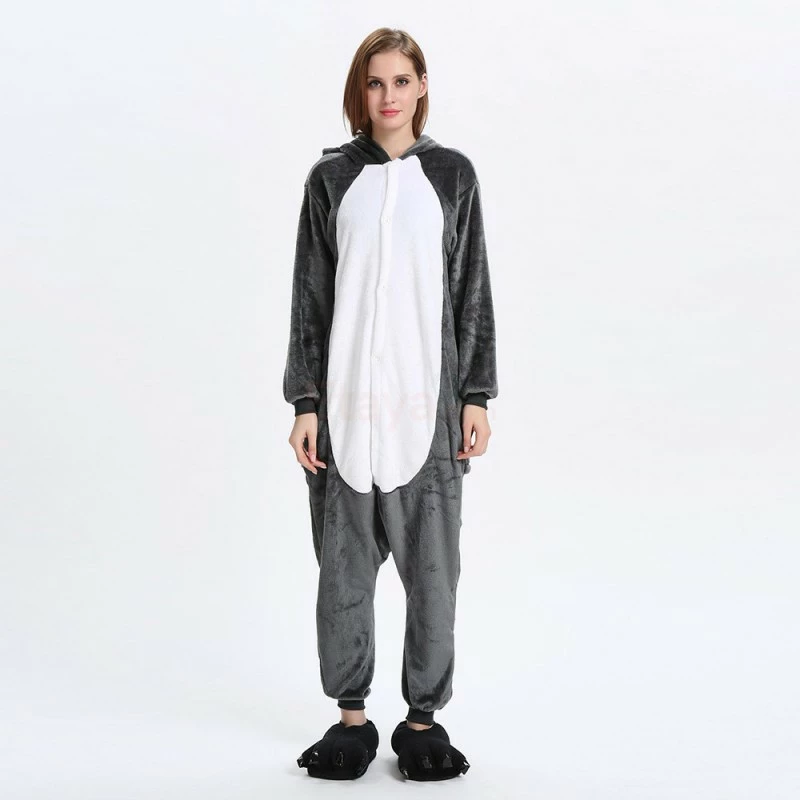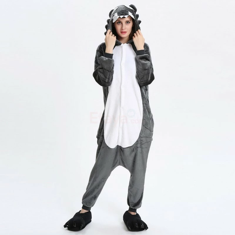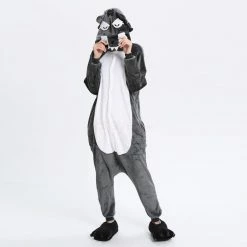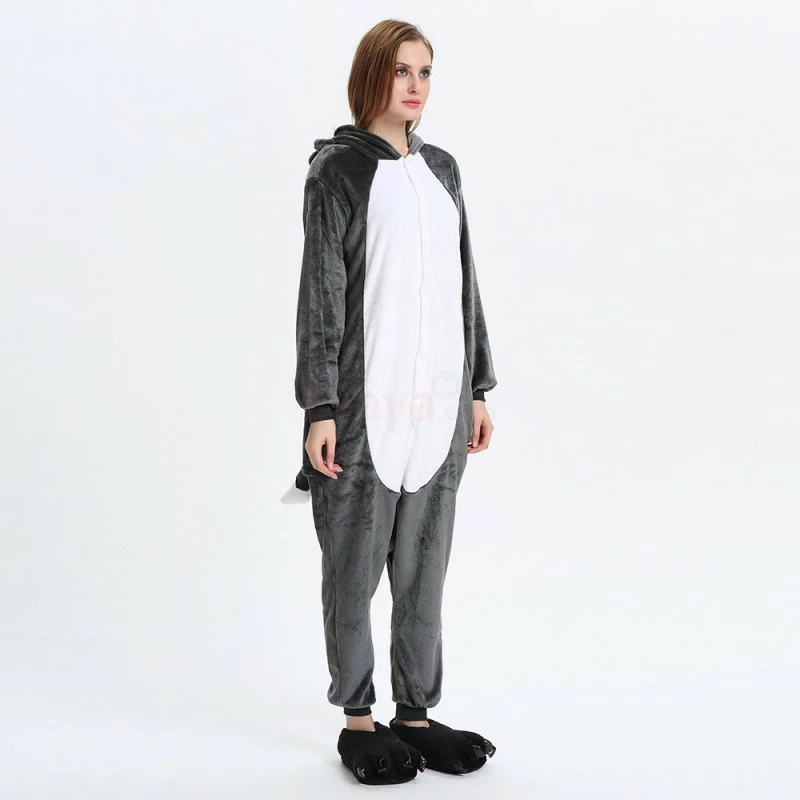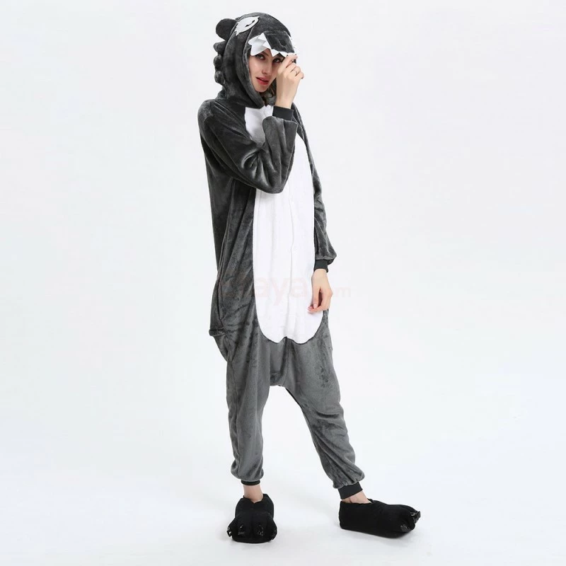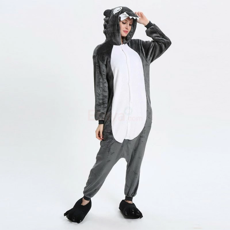 Timber Wolf first appeared in several warning stories, which is a generic archetype of a menacing predatory antagonist. But after people adapted to the cartoon direction, Timber Wolf became naughty and gentle, wearing Timber Wolf Kigurumi also made himself relaxed. Our Silver Wolf Kigurumi is made of uber soft 100% flannel and fleece which will keep you warm and cozy during the coldest of times!