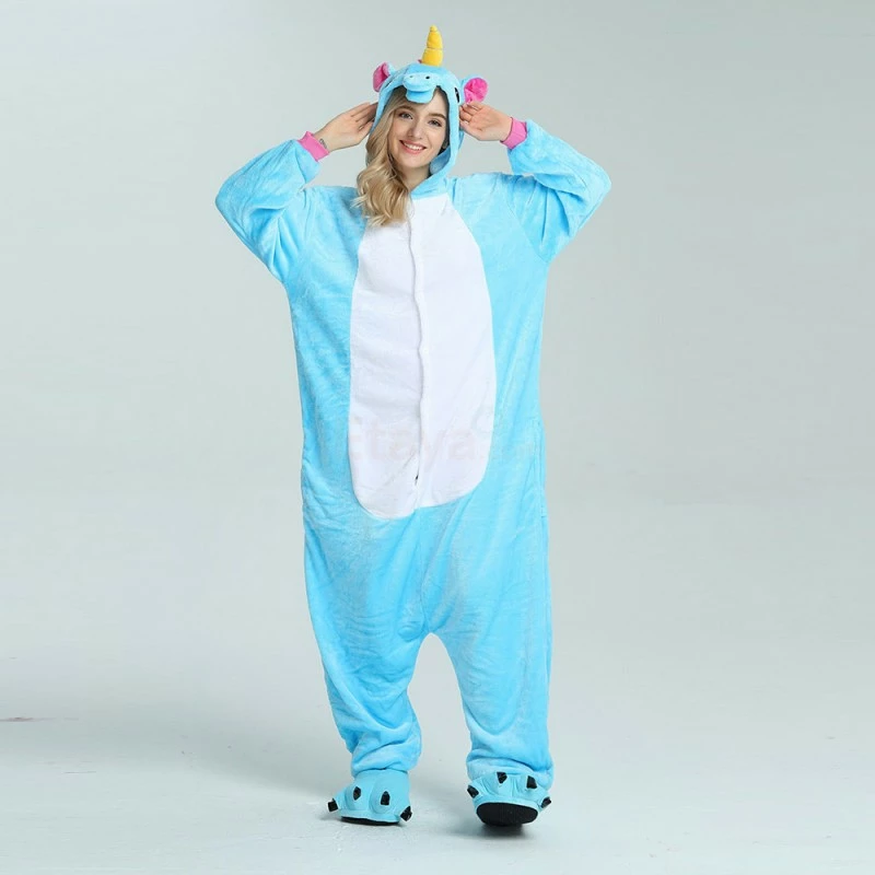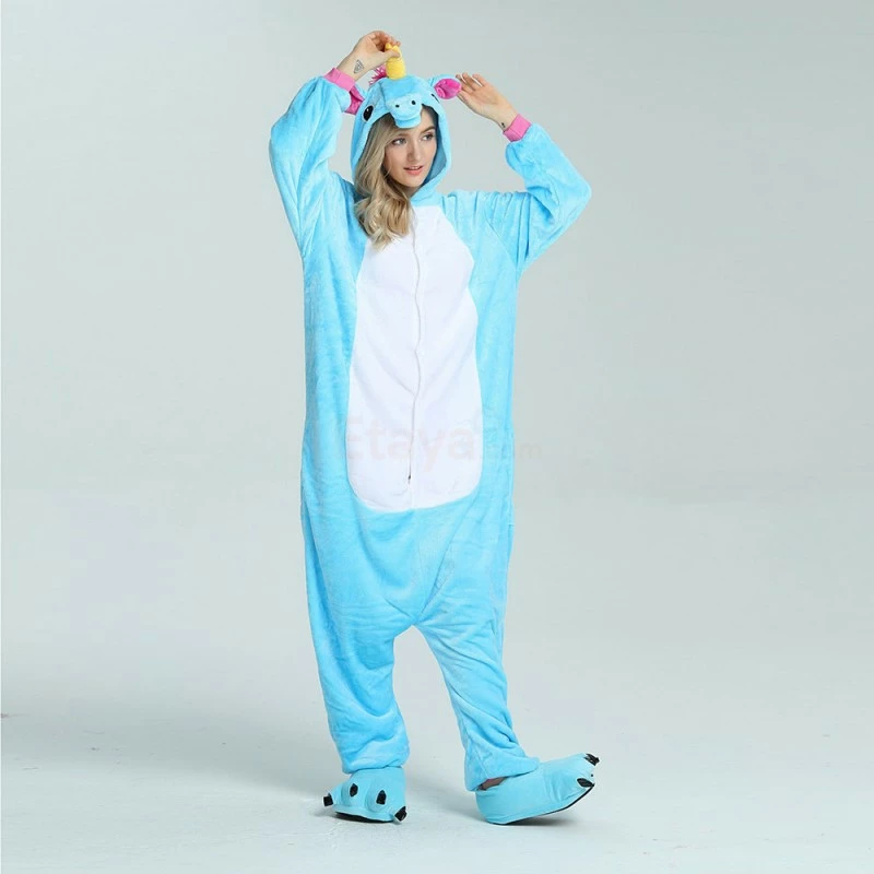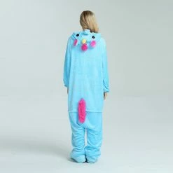 Unicorns are pretty much the most amazing creatures to ever exist, it can run on the ground, swim in the water, and fly in the sky. The Unicorn Blue Kigurumi has a blue background as a whole, and the pink ears correspond to the tail. The magical yellow horn will help you accomplish wildest dreams. The high-grade flannel fabric is more comfortable and warm to wear.