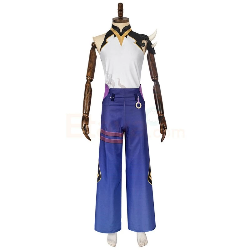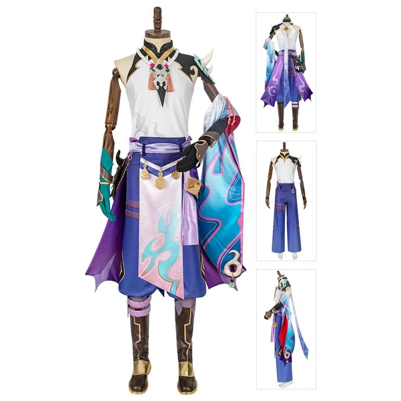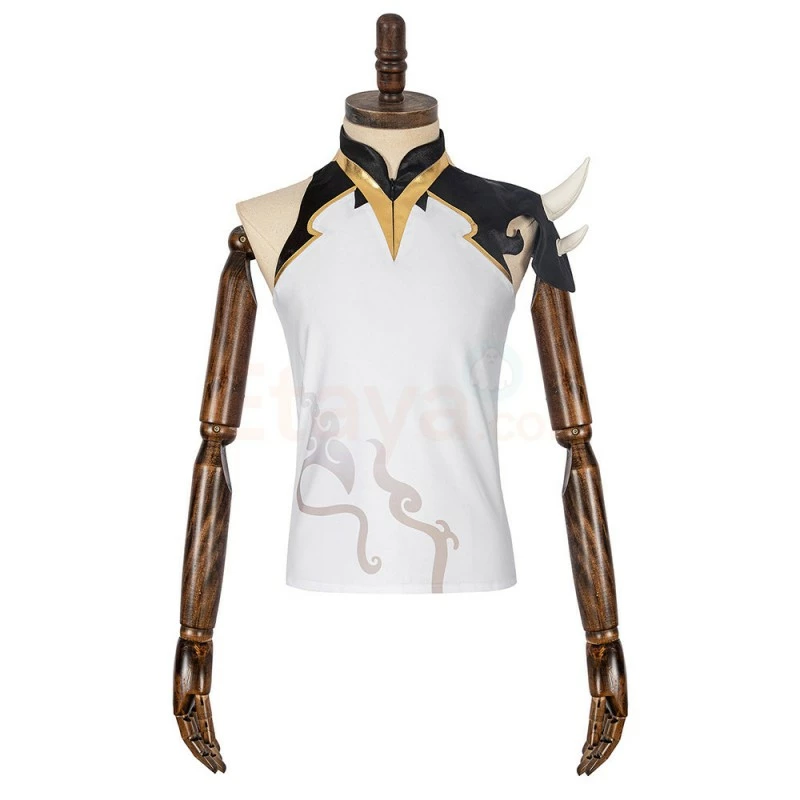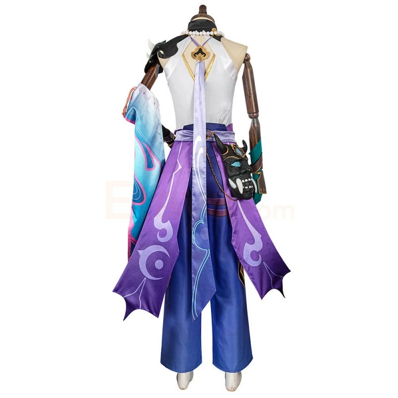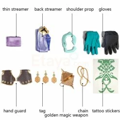 Full Set Including : Tops, Long Sleeve, Side Ribbons, Necklace, Pants, Thin Ribbon, Hand Guard, Back Ribbon, Shoulder Props, Boots Decoration, Belts, Chain, Tag, Tatto Stickers, Front Fabric Decoration